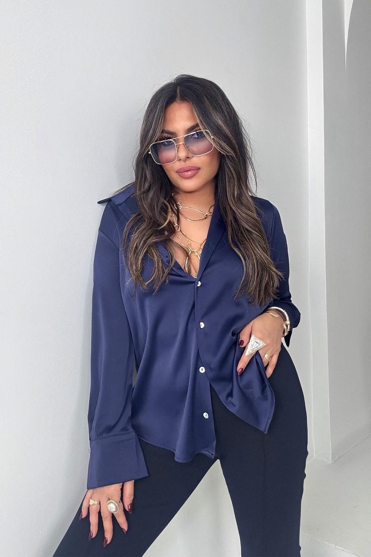 Kalın Saten Gömlek Lacivert (GMK0159_LacivertLacivertL)