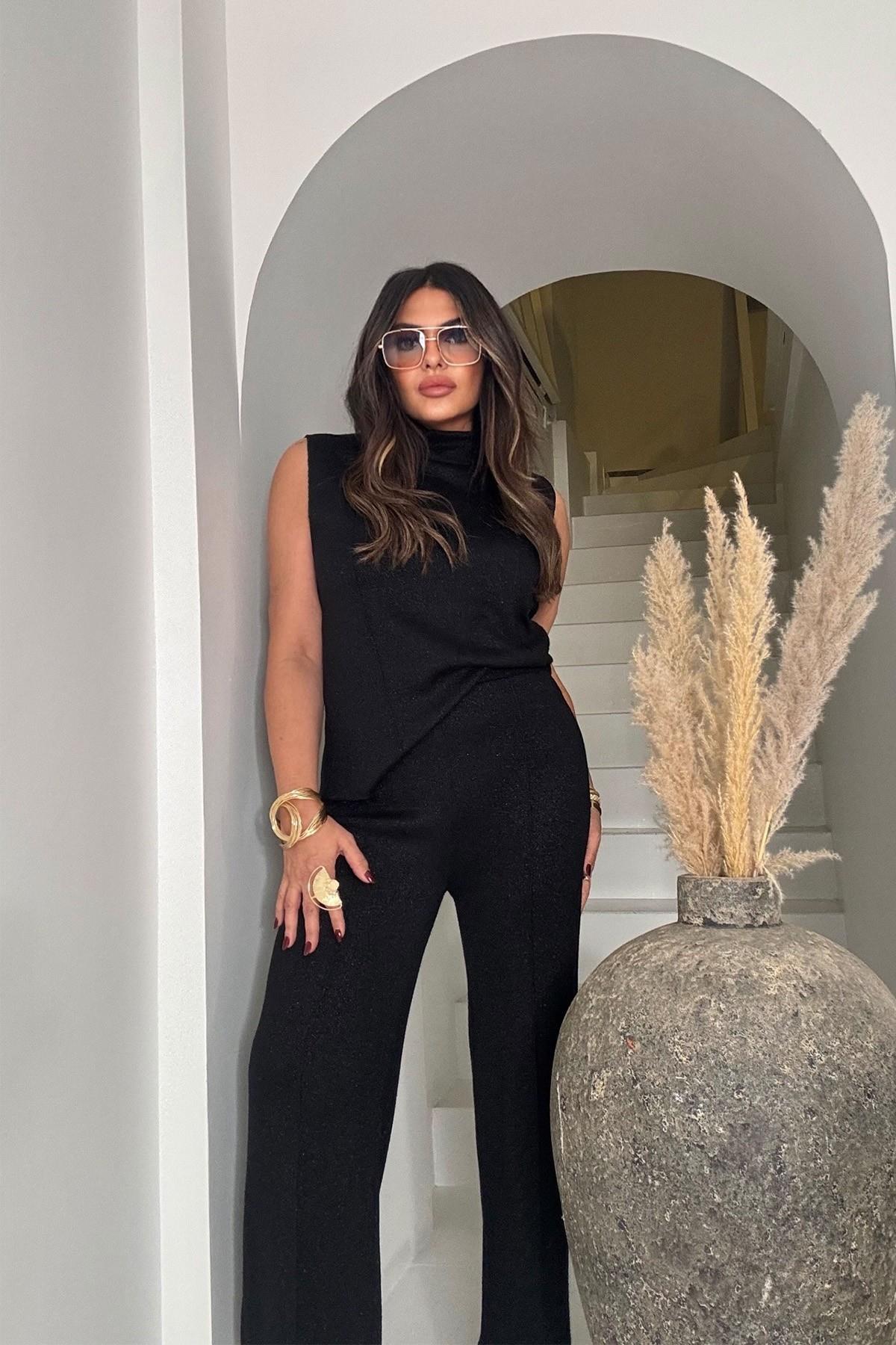 Simli Örme Kumaş Takım Siyah (TKM0340_SiyahSiyahL)